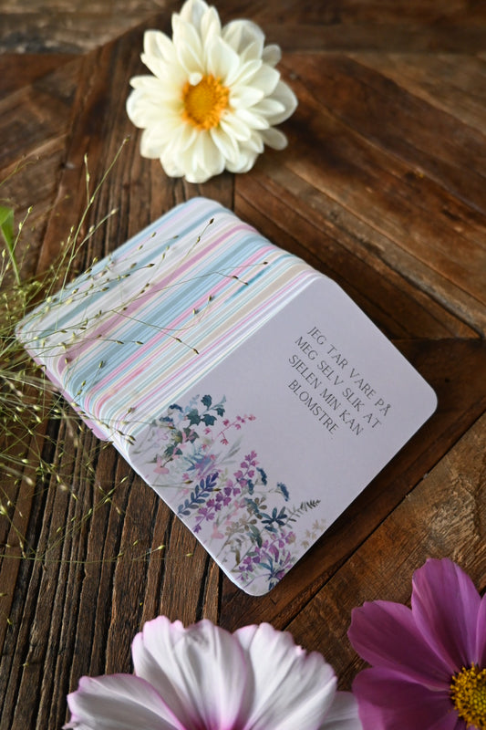 Da jeg oppdaget affirmasjonskort for tre år siden, ble jeg umiddelbart trukket mot det. Hver dag trekker jeg ett eller flere affirmasjonskort med positive budskap og god energi.